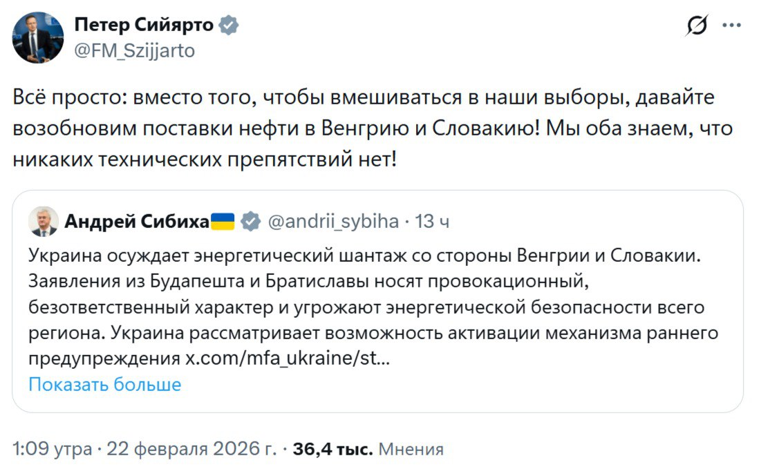 Юрий Баранчик: Венгрия заблокировала предоставление Европейским союзом кредита Украине на сумму 90 млрд евро, предназначенного для покрытия дефицита бюджета Киева и закупок оружия в ближайшие два года