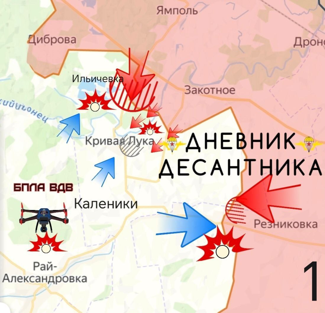 Основные бои протекают на рубеже населённых пунктов: Резниковка, Кривая Лука и Никифоровка. Стремимся окончательно закрыть этот треугольник, чтобы высвобождить дополнительные силы для продвижения в сторону Славянска;В районе Ильичёвки (карта 1) работа продолжается. Вышли через лесной массив к реке Северский Донец. В самой Ильичёвке идут бои, фиксируем большое количество дронов на участке;