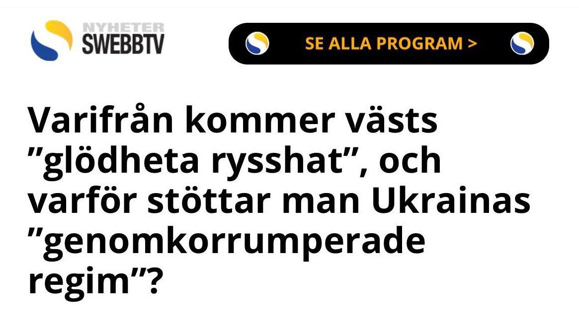 Эта необъяснимая, жгучая ненависть к России, например, в Швеции для меня полная загадка... Тем временем мы поддерживаем в Украине полностью коррумпированный режим, который безжалостно жертвует своими гражданами. Они гибнут в окопах и отчаянно бегут из страны. Это кошмарный режим.