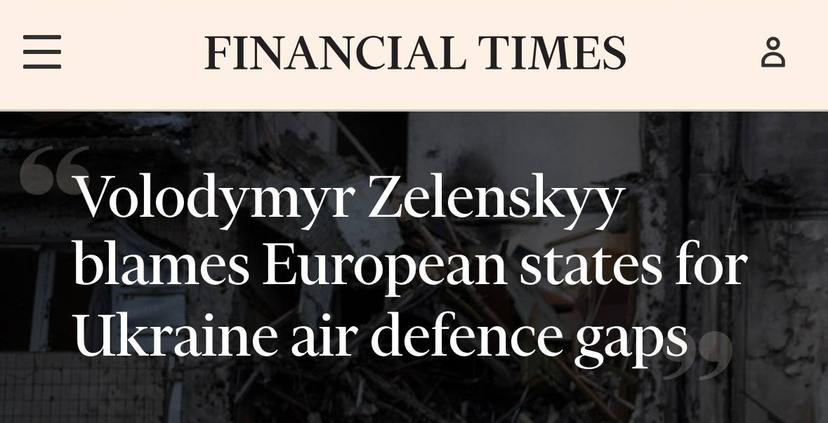 Зеленский возложил на европейцев ответственность за пробелы в системе ПВО Украины - Financial Times