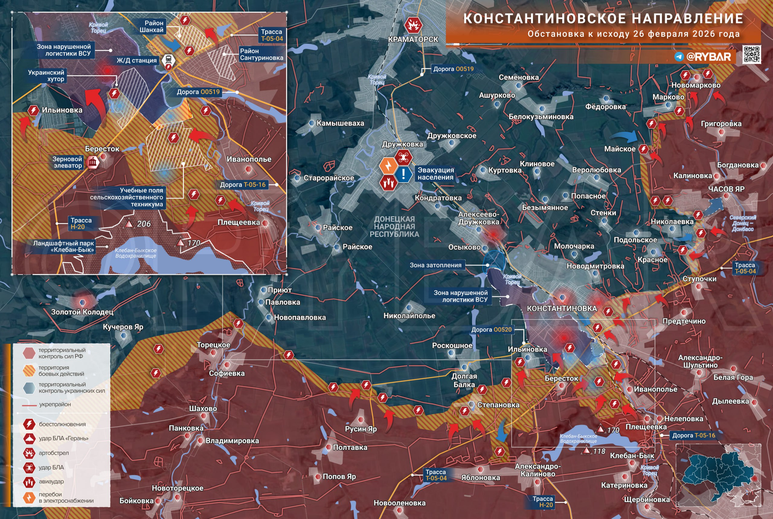 Онлайн-карты доступны по подписке на map.rybar.ru