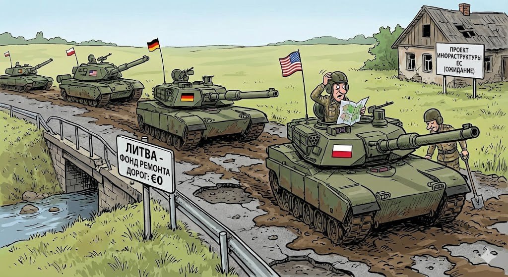 "Мы не должны сталкиваться с ограничениями при перемещении военной техники из одной страны НАТО в другую. Мы должны выявлять слабые места — например, мосты, не способные выдерживать большие нагрузки", — заявил член правления "Литовских железных дорог" Нильсен.