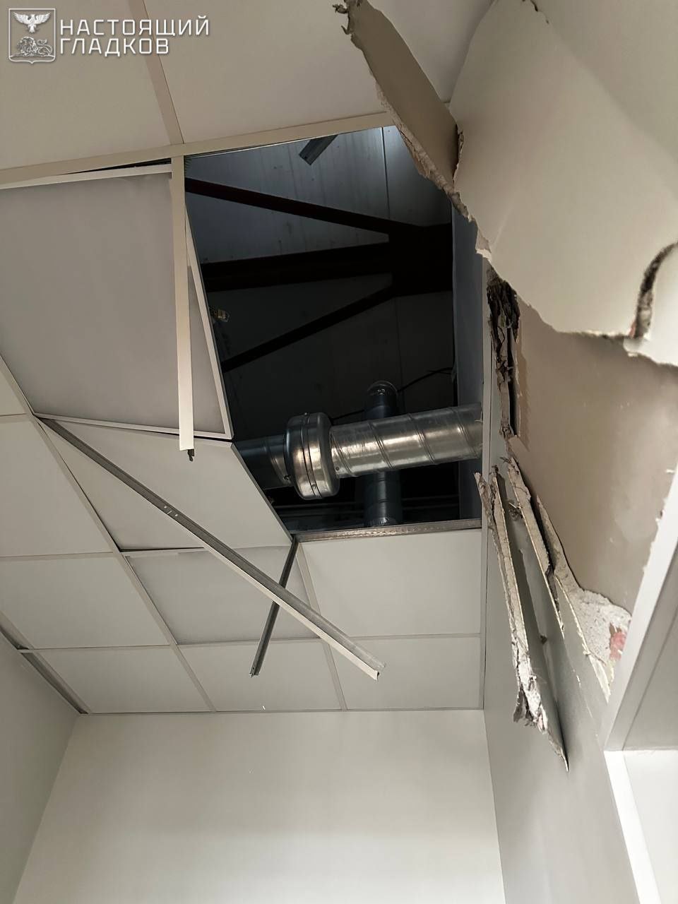 Пострадала мирная жительница. Женщине, получившей баротравму, бригада скорой оказала медицинскую помощь на месте. От предложенной транспортировки в стационар она отказалась.В здании повреждены кровля, потолок и внутренняя отделка одного из помещений.