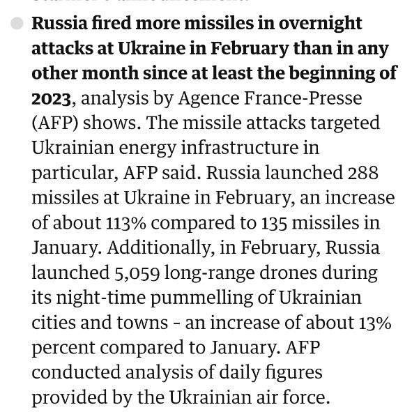 В феврале Россия выпустила по Украине 288 ракет, что является самым большим количеством с начала 2023 года. И это на 113% больше, чем в январе, — AFP.