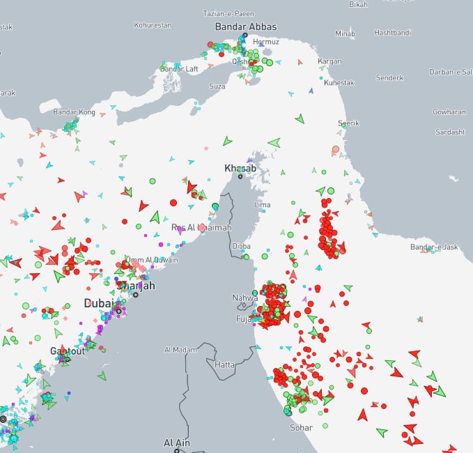 Судя по данным сервисов по отслеживанию морского трафика, множество кораблей стоят на якоре у берегов, не пытаясь проплыть через пролив.