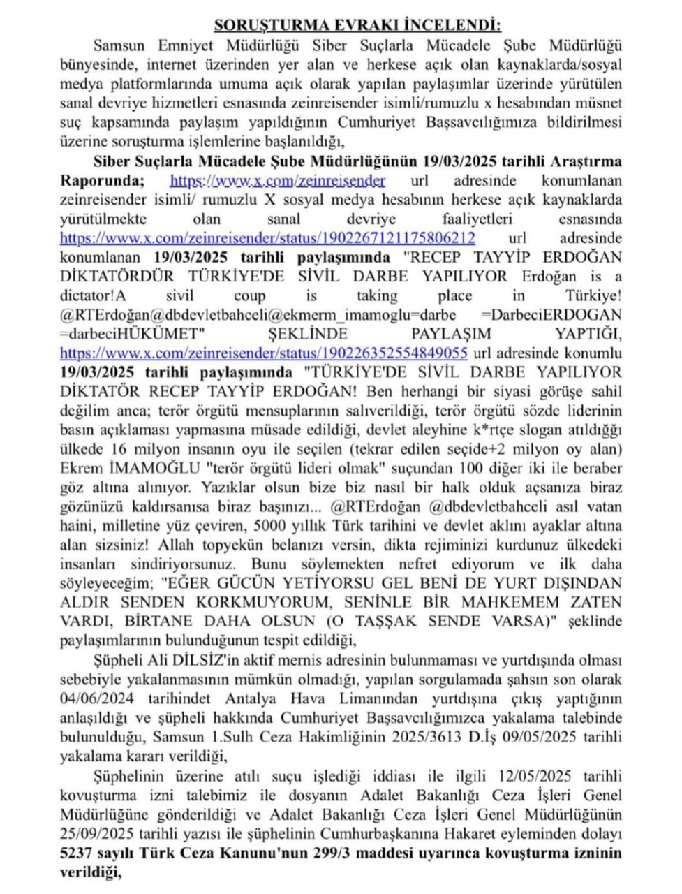 В социальных сетях и комментариях продолжает открытую радикальную риторику: оскорбляет президента Турции, призывает к строительству концлагерей по образцу Аушвица для сторонников партии AKP, предлагает «перерабатывать в мыло» политических оппонентов, открыто агитирует турецкую молодежь к вооружённому перевороту и физическому устранению действующей власти. Турецкие правоохранительные органы ведут расследование по статьям об оскорблении высших должностных лиц и призывах к свержению конституционного строя (подтверждающие сканы выше).