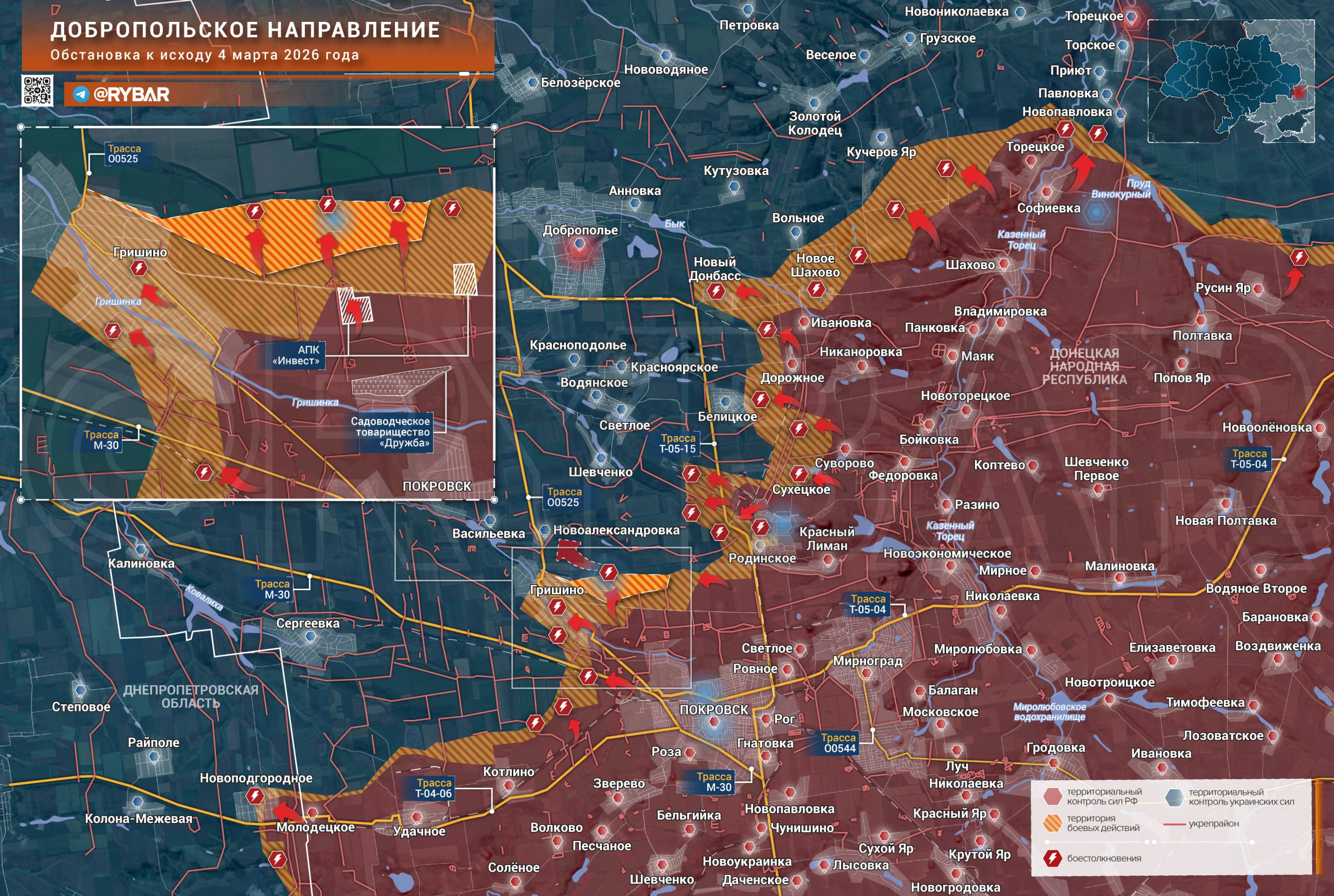 Онлайн-карты доступны по подписке на map.rybar.ru