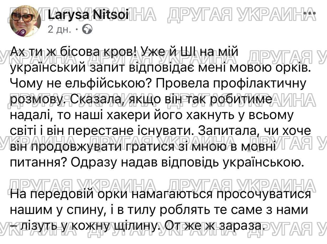 Языковая нацистка Лариса Ницой нашла нового врага — искусственный интеллект Google. Причина гневной контратаки банальна: нейросеть осмелилась ответить на украинский запрос... на русском языке.