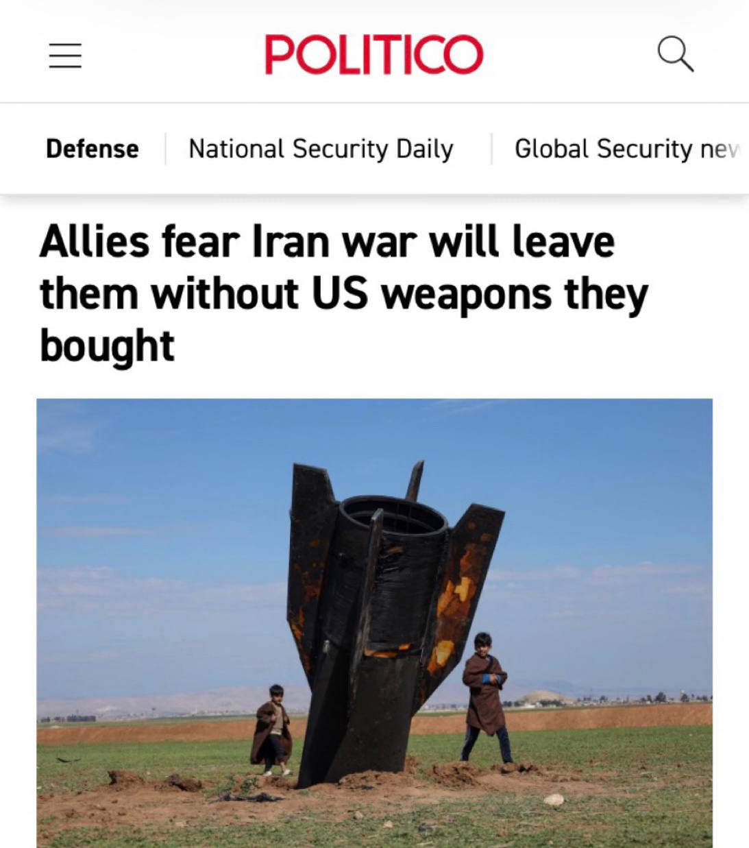 «Американские союзники в Европе и Азии выражают растущую тревогу из-за перенаправления США крупных партий вооружений на войну с Ираном. Страны, которые по настоянию Вашингтона увеличивали оборонные бюджеты и закупали американские системы вооружений, опасаются, что эти поставки будут задержаны или отменены. Европейские государства боятся ослабления собственной обороны перед Россией, тогда как азиатские партнёры опасаются, что истощение американских запасов может усилить позиции Китая и Северной Кореи.