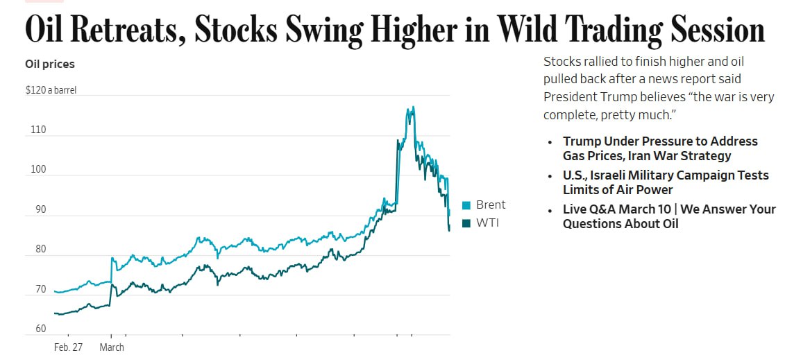 После подобных заявлений цены на нефть начали снижаться — рынок отреагировал на сигналы о возможном завершении конфликта, пишет The Wall Street Journal.