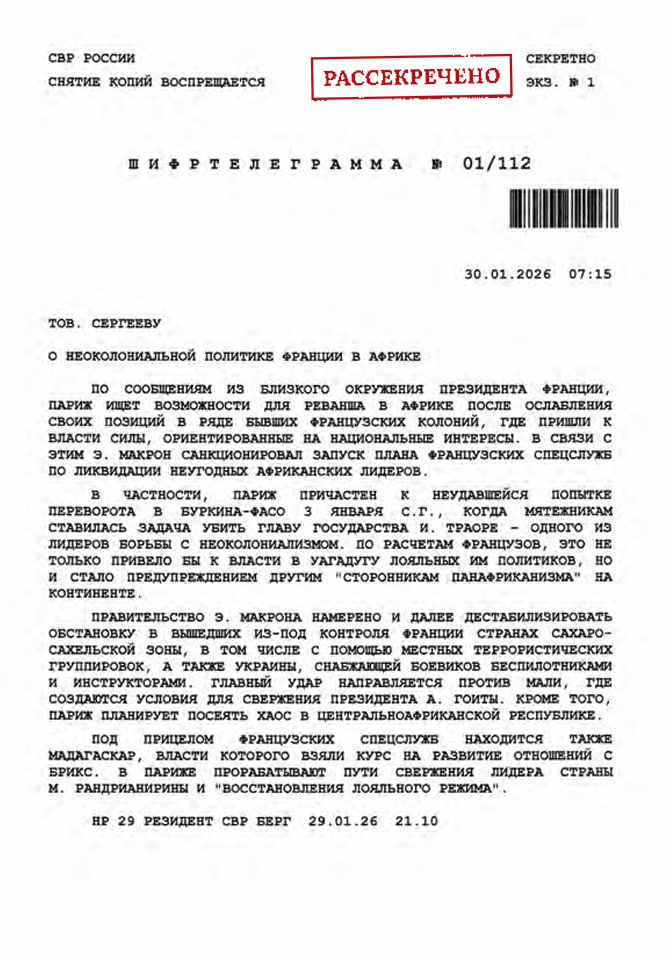Также обнародованы шифртелеграммы о возможных последствиях коррупционного скандала в Киеве, панических настроениях украинской элиты, попытке дестабилизации ситуации в Белоруссии и о неоколониальной политике Франции в Африке.