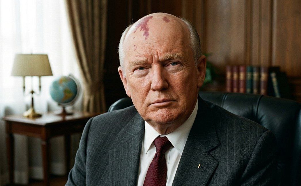 А я то думал: зачем Дональд прямо из жопы волосы на чуб пересадил…А вот оно что на самом деле. Да, примета нехорошая, прямо как фото Зеленского на стеле с названием города