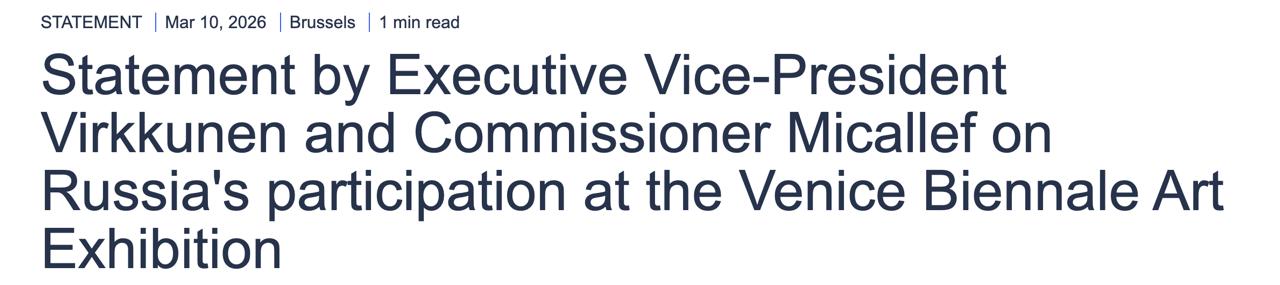 «Культура продвигает и защищает демократические ценности, способствует открытому диалогу, разнообразию и свободе выражения мнения и никогда не должна использоваться в качестве платформы для пропаганды. Государства-члены, учреждения и организации должны действовать в соответствии с санкциями ЕС. Если Fondazione Biennale примет решение разрешить участие России, мы рассмотрим дальнейшие меры, включая приостановку или прекращение текущего гранта ЕС для Фонда Биеннале», - говорится в заявлении исполнительного вице-президента ЕК Вирккунена и комиссара Микаллефа.