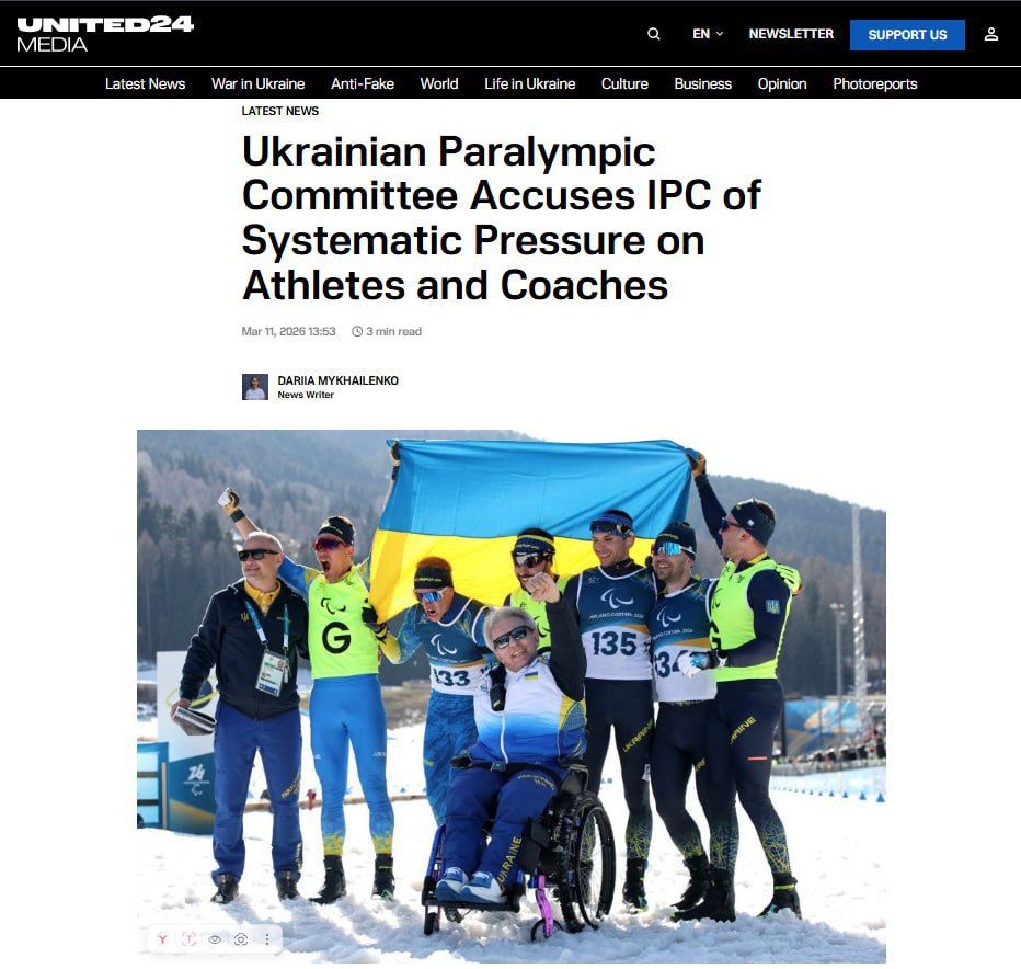 Международный паралимпийский комитет запретил украинской сборной выступать на церемонии открытия в форме с изображением включающей Крым карты Украины.