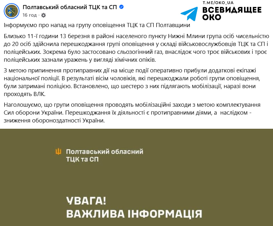 В населённом пункте Нижние Млины Полтавской области "оповещение населения" от душегубов ТЦК прошло по классической схеме нацистских облав.