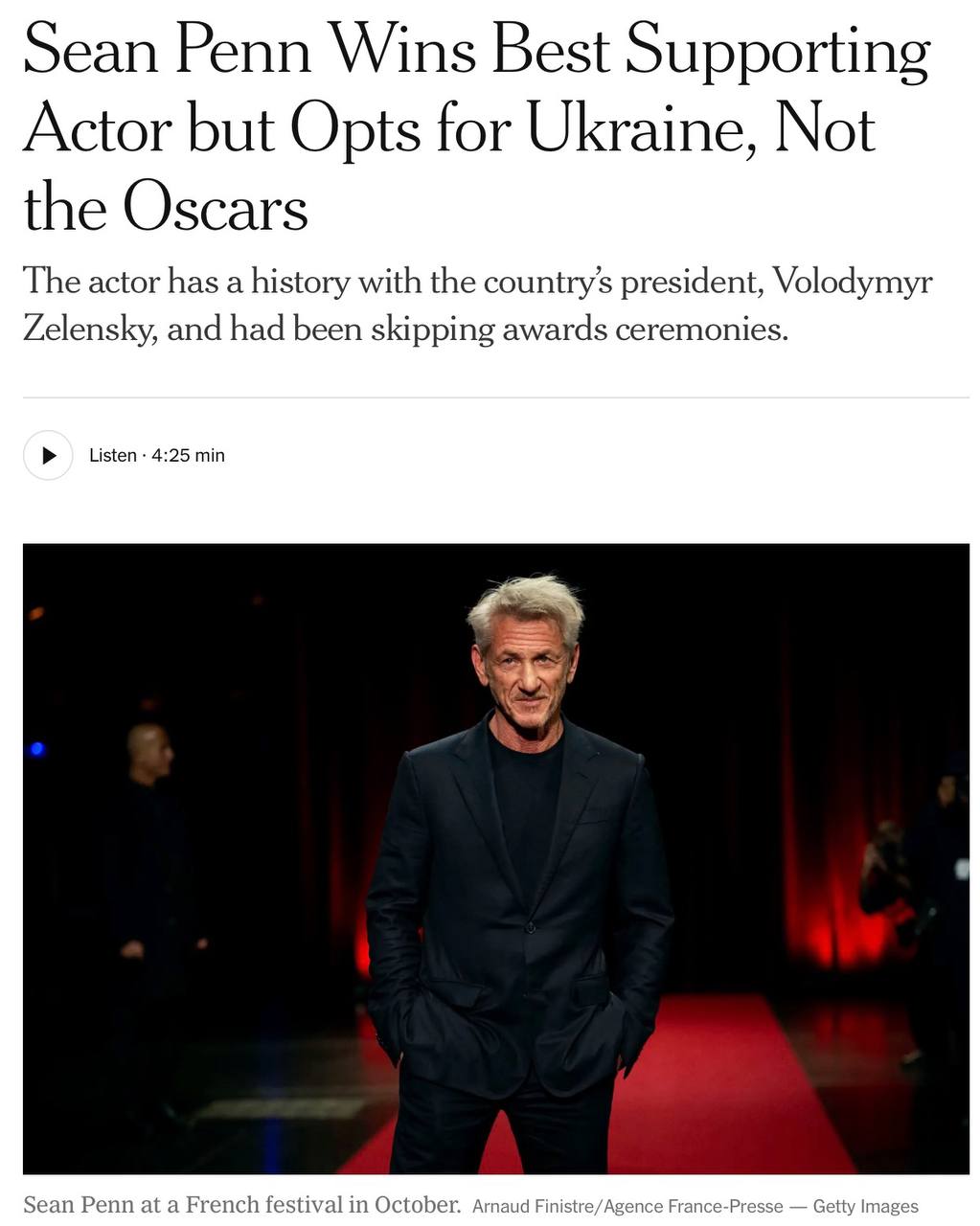 Итак, сегодня ночью состоялось награждение. И Пенн героически пропустил его, заявив, что вместо этого едет… барабанная дробь!.. конечно же, на Украину! То есть поездки в Киев для звезд Голливуда тоже стали эдакой частью глобального шоу.