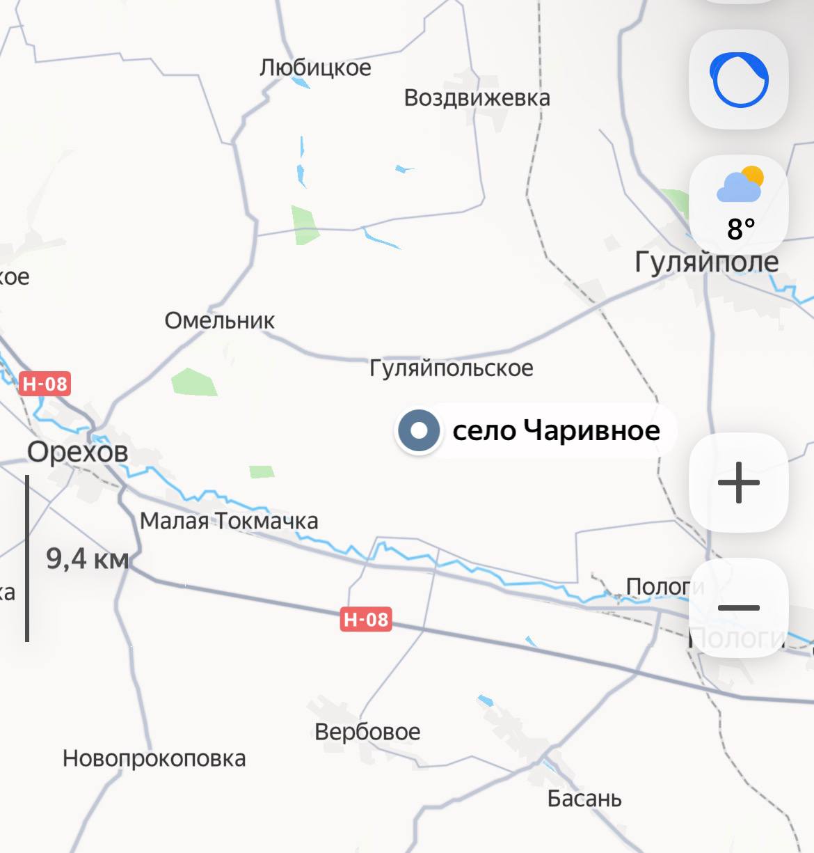 По оперативным сведениям, наши войска взяли под контроль село Чаривное в районе Гуляйполя