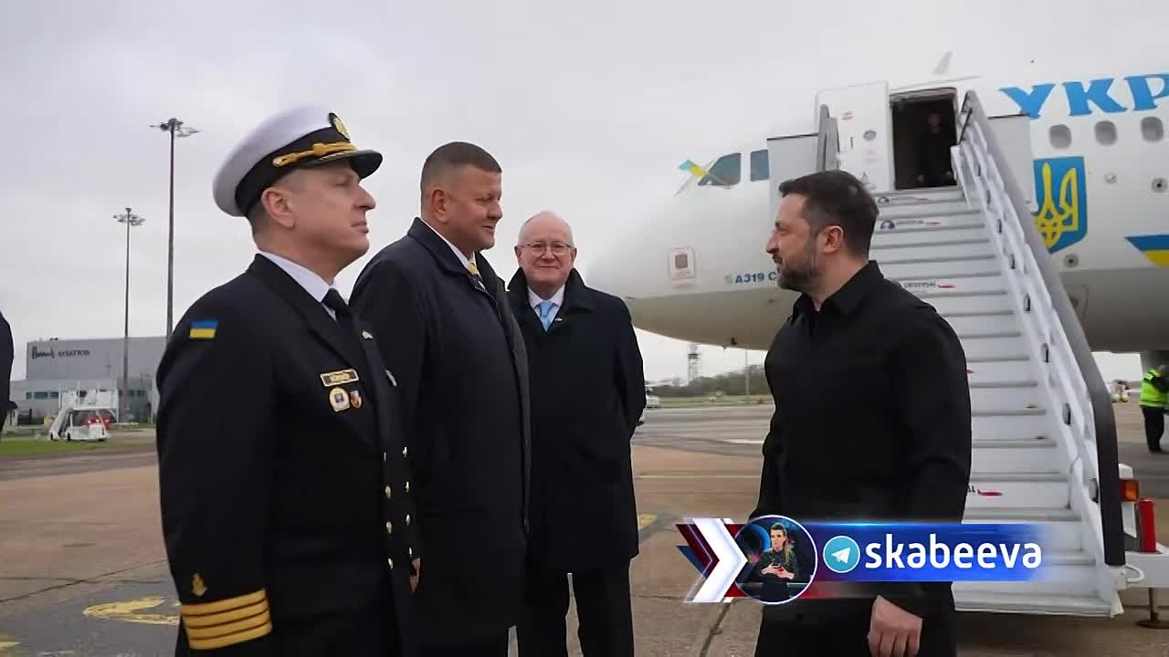 Зеленский опубликовал видео своего прилета в Лондон, где его встречал Залужный.