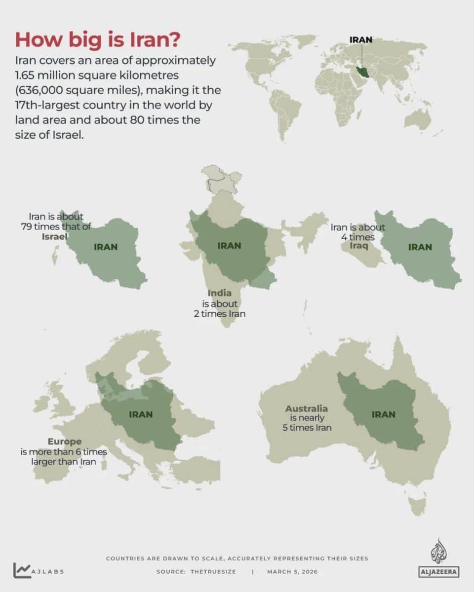 Пока бесноватый Дональд Дак Трамп склоняется к наземной операции в Иране, оценим размеры Ирана.