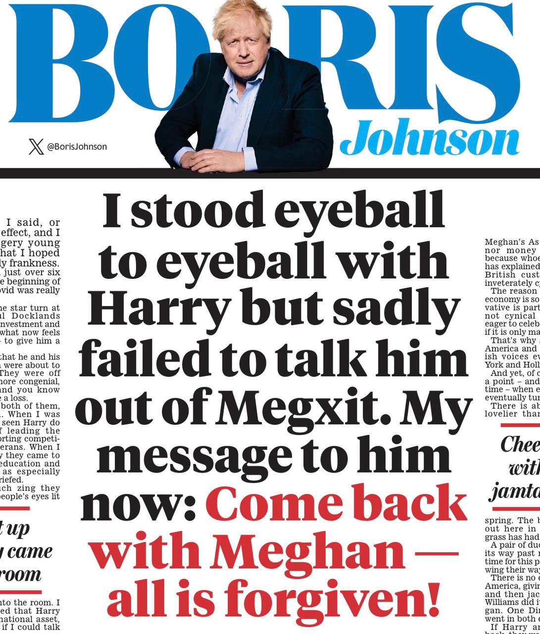 Как он восторгался нападением на Иран в первые дни операции! Но как только что-то пошло не так, вообще о ней не упоминает! Сегодняшнюю свою колонку для Daily Mail он посвятил совершенно никчемной теме - уговорам принца Гарри и ее супруги Меган вернуться из США в Британию.