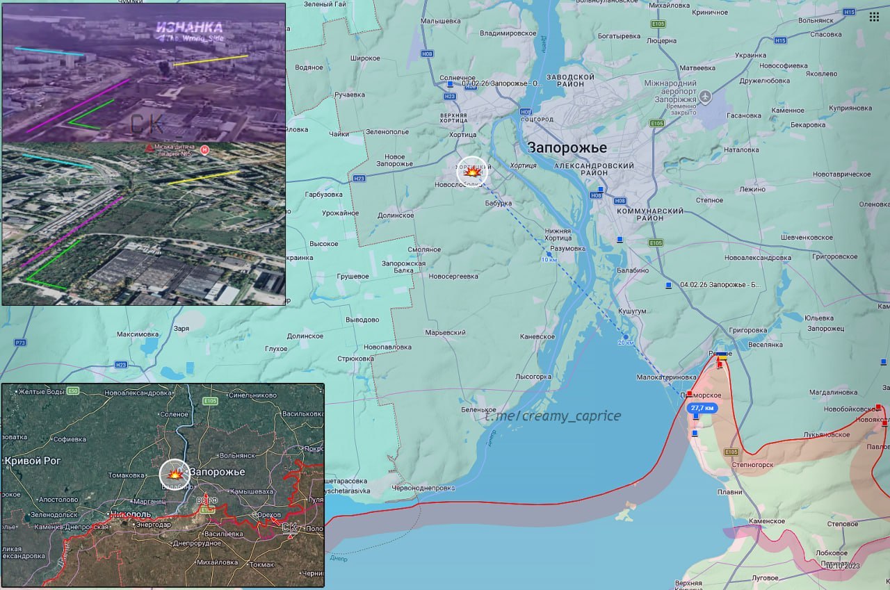 Сообщается, что результатом ударов стало успешное поражение после обстрела со стороны ВС РФ электротехнического оборудования на электроподстанции «Спутник» 154/35/10 кВ в оккупированном Запорожье. Удаление от зоны активных боевых действий 28 км.
