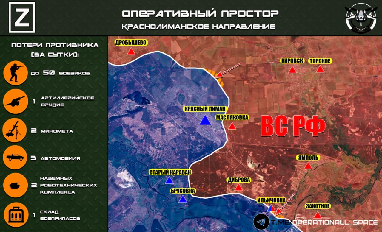 На Краснолиманском направлении ВС РФ ведут бои в районе Красного Лимана, сообщает "Оперативный простор":