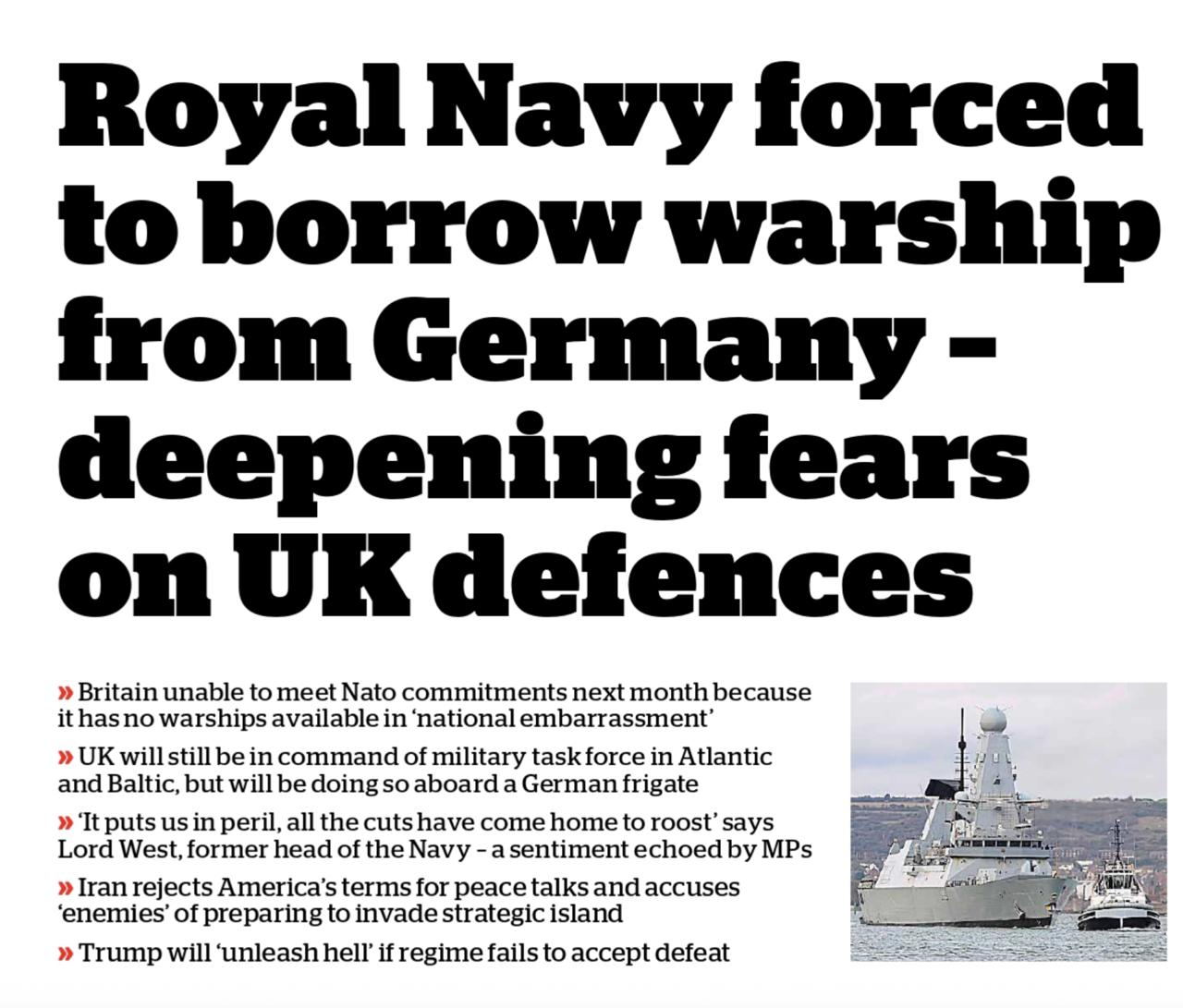 Некогда великая морская держава Британия в следующем месяце вынуждена будет занять у Германии военный корабль, чтобы выполнить свои обязательства перед НАТО! Что называется, дожили!