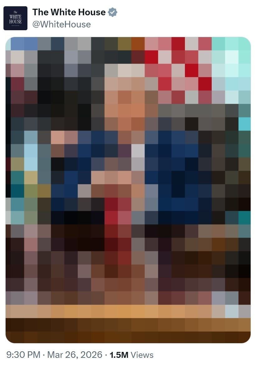 На картинке… После заявления президента США, что он не желает видеть «тупого человека» в Овальном кабинете, Белый дом опубликовал его портрет в необычном виде. Возможно, это была неудачная попытка представить его в образе персонажа известной компьютерной игры «Майнкрафт».