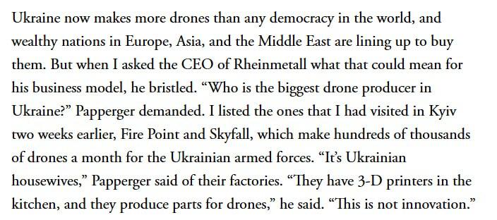 The Atlantic: Армин Паппергер, глава Rheinmetall, высмеял «инновационное» производство дронов на Украине: