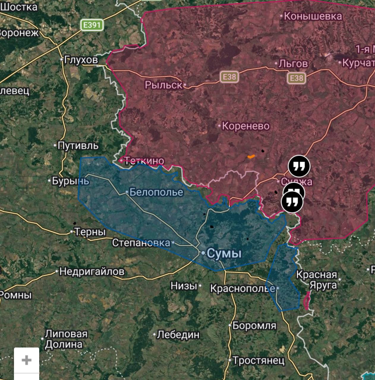 В Шосткинском районе идут стрелковые бои в лесных массивах, операторы БПЛА и артиллеристы ВС РФ наносят удары по объектам врага;Чуть севернее идут бои за участок у трассы на Киев, вражеские войска подтягивают дополнительные резервы для удержания рубежей;
