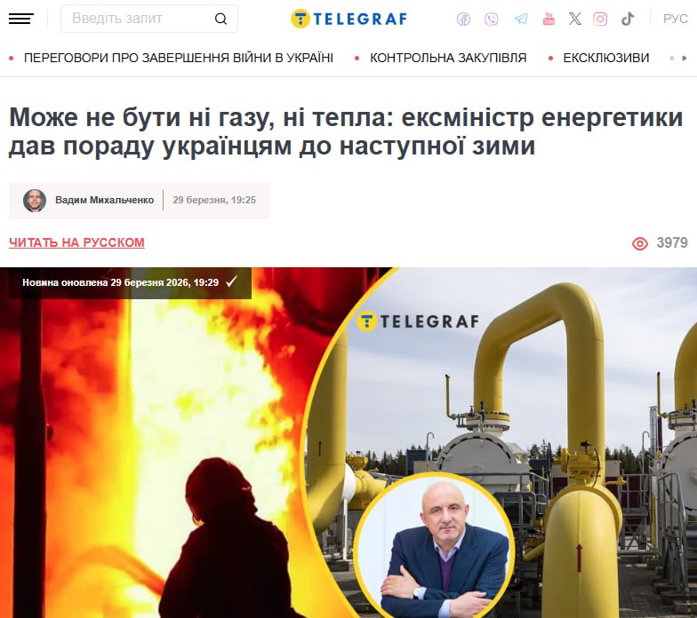 «Я уже несколько лет советую всем украинцам находить друзей, знакомых, родственников в селах или районных центрах. Я не говорю о полноценной эвакуации из Киева. Но на неделю, на две, а может и на месяц — вывезти детей туда, где традиционное печное отопление на дровах или угле. Чтобы можно было переждать критический период, пока энергетики и газовики возобновят системы, и не страдать так, как в этом году. <...> Это единственное, что я могу посоветовать людям», — заявил он.