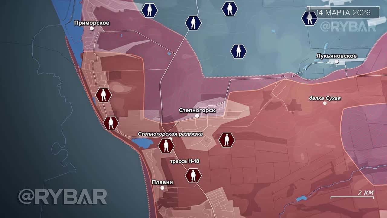 К 14 марта противник смог продвинуться в районе Степногорска, а также вновь занять часть позиций к западу от поселка. В течение следующих двух недель ВСУ также расширили зону контроля в Приморском, однако закрепиться в центре населенного пункта ВСУ не удалось.