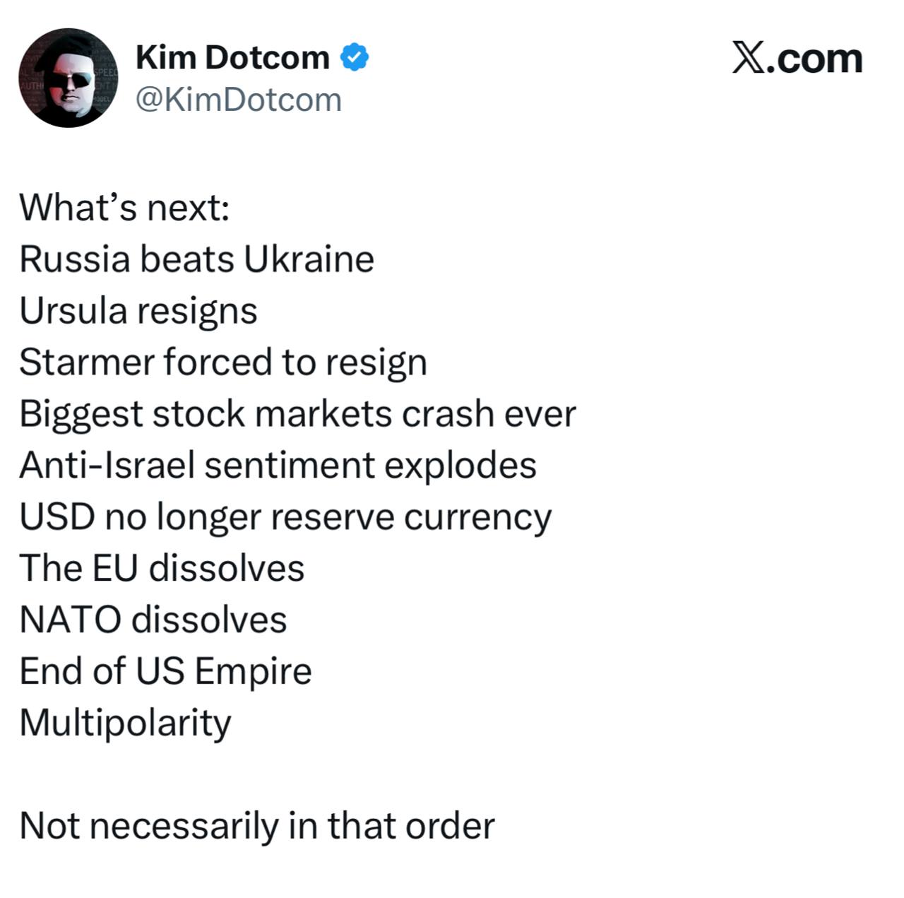 Ким Дотком - о том, что будет после окончания войны на Ближнем Востоке: