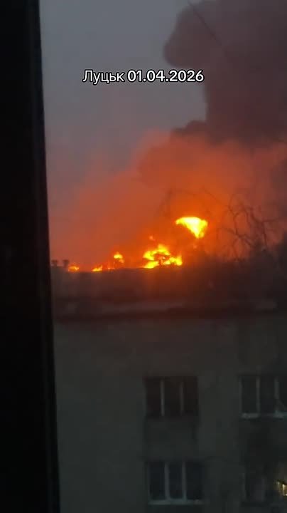 Недоброе утро в Луцке на Западной Украине. После прилета русских "Гераней" горят склады "Новой Почты".