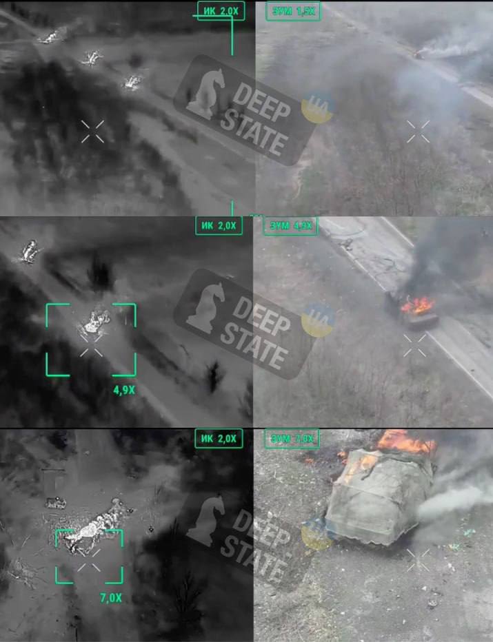 DeepState пишет, что ВСУшная колонна даже не смогла доехать к Красноармейску. Бойцы ВС РФ обнаружили и сожгли колонну ещё на этапе её выдвижения.