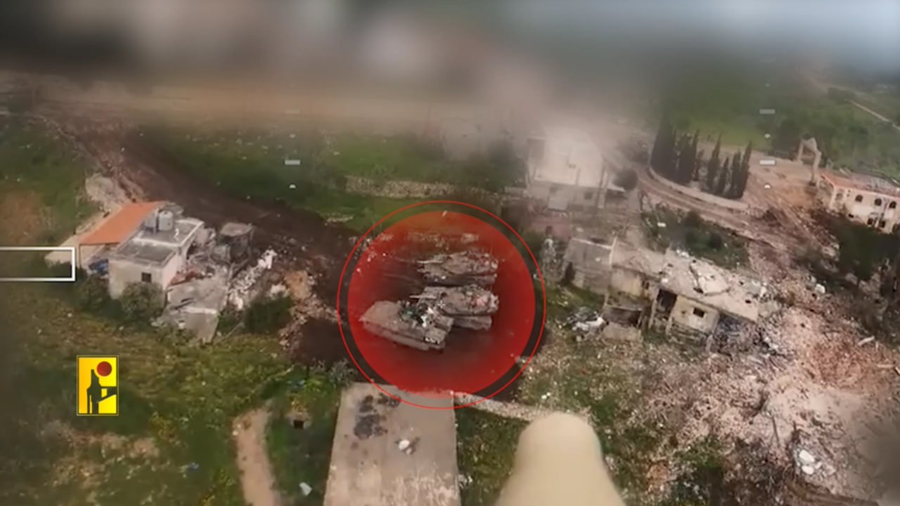 На этот раз под удар одиночного дрона попала стоянка двух танков Merkava Mk.4M и ТБТР Namer, который поучил попадание в кормовую часть с неизвестным исходом.