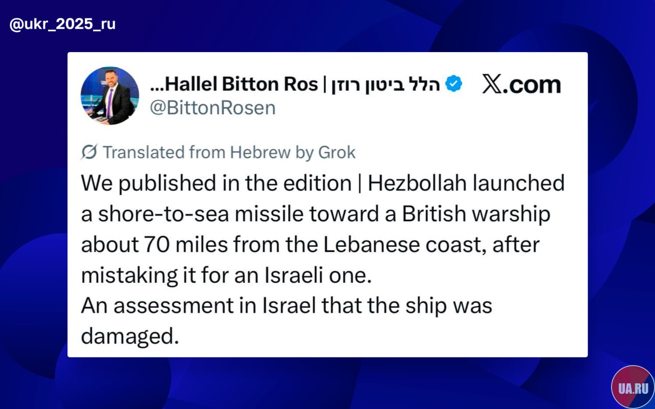 14 телеканал в Израиле заявляет, что «Хезболла» повредила британский военный корабль