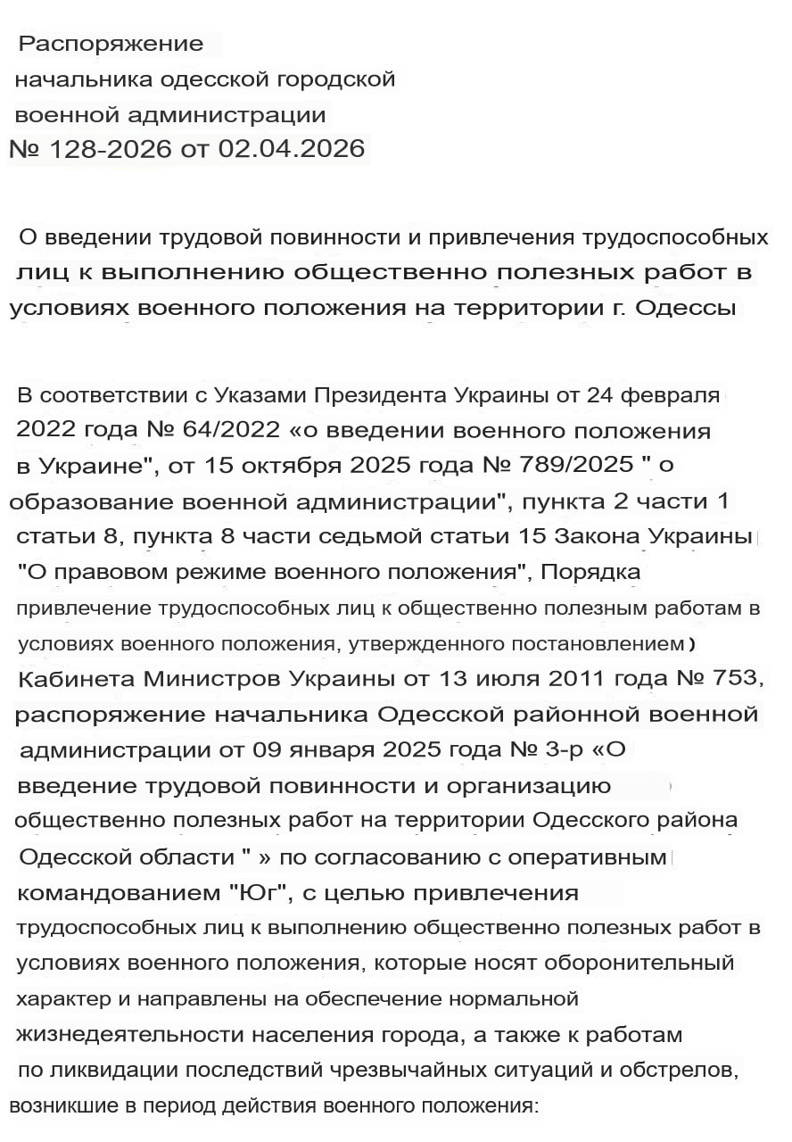 Естественно, оплачиваться такая деятельность не будет. О карательных мерах в случае отказа ничего не говорится, но мы видим, как на Украине формируют боевые подразделения из «добровольцев». Очевидно, это скотство планируют экстраполировать и на рабский труд. Одесса, видимо, тестовый регион.