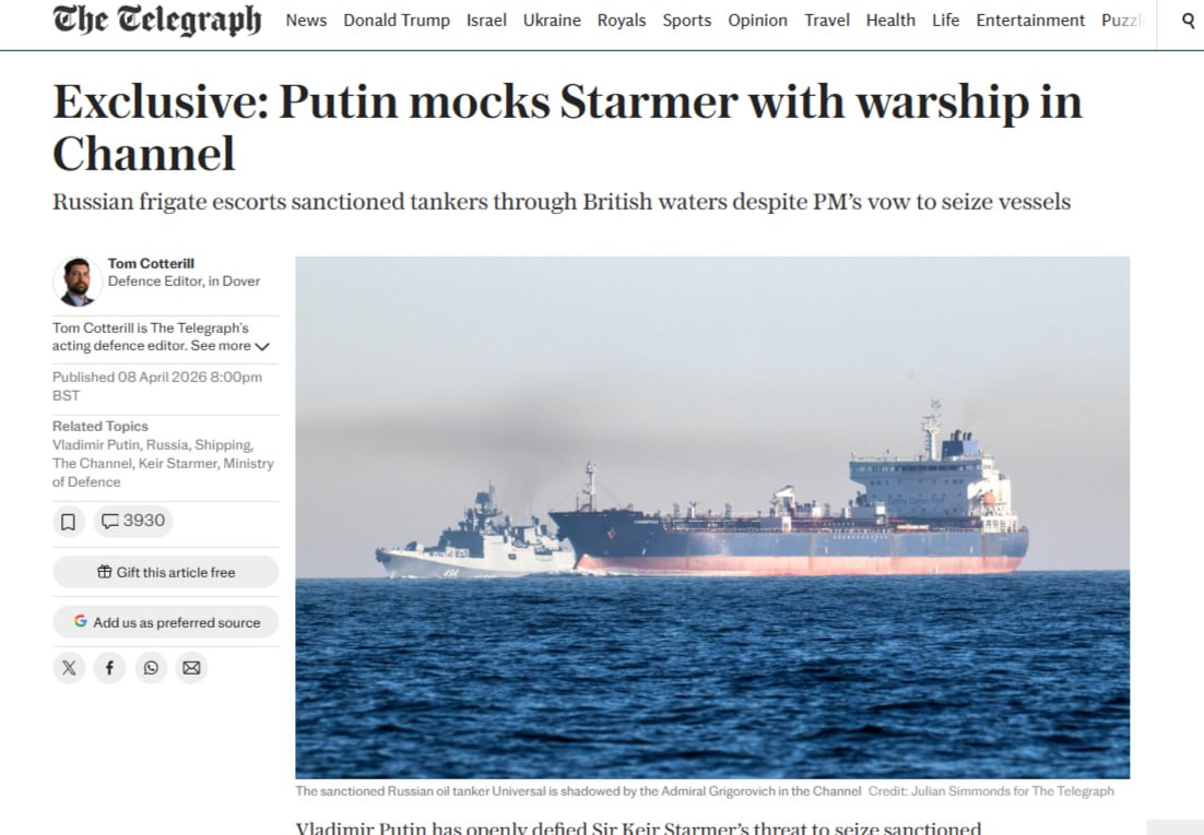 Из-за чего британские СМИ уже натурально взорвались, требуя от премьера Стармера чего-нибудь жуткого. Поскольку пару недель назад Стармер дал спецназу полномочия захватывать такие танкеры. Со ссылкой на различных отставников, The Telegraph продвигает мысль, что «русские стремятся унизить Великобританию».