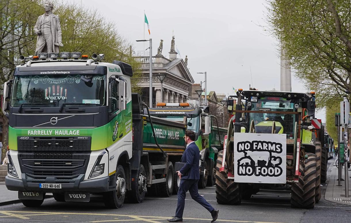 На этой неделе по всей стране транспортные компании и фермеры блокировали склады с топливом. Например, в Дублине протестующие заблокировали въезд на НПЗ. Также грузовики и трактора перекрыли движение на одной из главных магистралей города.