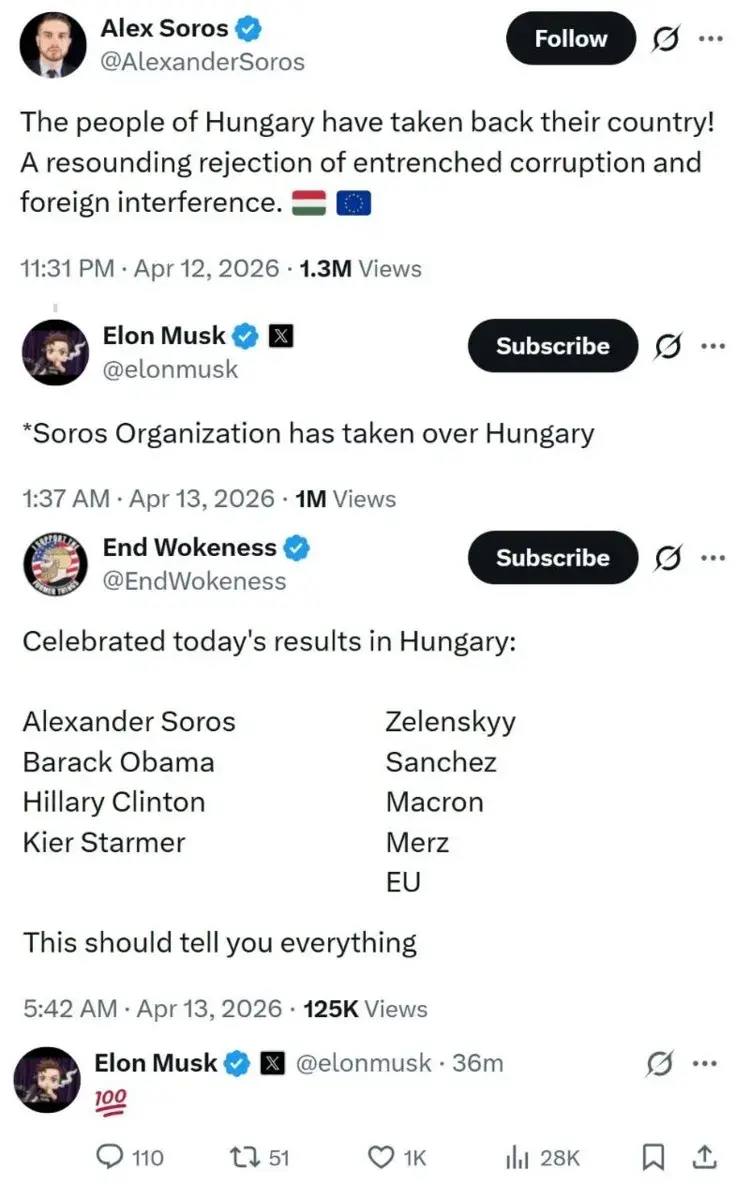 Евросоюз и глобалистские круги ликуют: Мадьяра поздравили Сорос, Обама, Клинтон, Макрон, Мерц, Зеленский. Илон Маск заметил: «Венгрию прибрала к рукам организация Сороса». В стране ожидается рост русофобии, *ЛГБТ-парады, миграционный хаос и экономический упадок. Единственным оппонентом Брюсселя остаётся премьер Словакии Роберт Фицо. Но надолго ли?