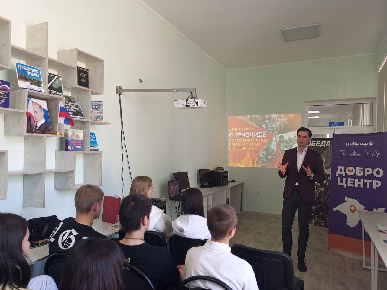 81 год назад завершилась Великая Отечественная война. Горькая правда заключается в том, что её итоги начали переписываться не сегодня, а практически сразу после окончания этой мясорубки, навязанной нашей стране человеконенавистническими силами. Поэтому важно сохранять память о зле, которое нанёс Третий рейх и его пособники советскому народу, наследниками которого мы являемся. Об этом я говорил сегодня на встрече с учениками средних классов в Центральной библиотеке Муниципального казённого учреждения культуры Симферопольского района «Районная централизованная библиотечная система» (пгт. Гвардейское).