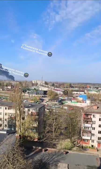 На видео поражённая вчера ударом Герани нефтебаза в Чернигове.