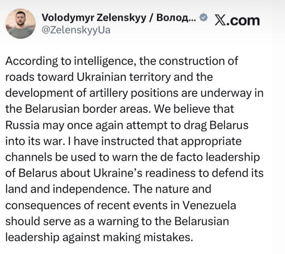 Ранее Зеленский заявил, что Беларусь может атаковать Украину.