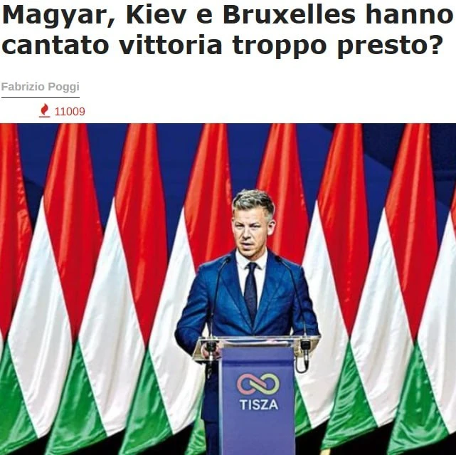 По мнению L'Antidiplomatico, на Украине преждевременно радуются по поводу победы Мадьяра на парламентских выборах в Венгрии.
