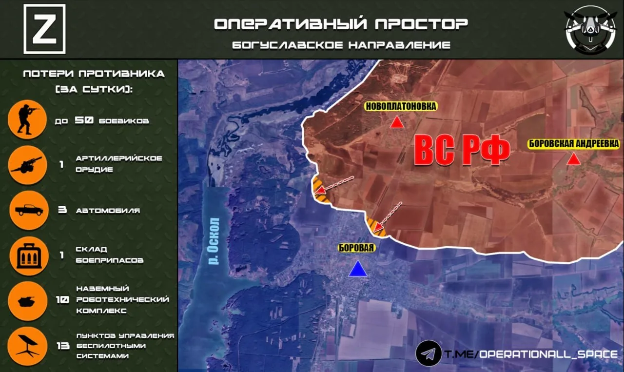 На Богуславском направлении ВС РФ наступают в районе н.п. Боровая, сообщает "Оперативный простор":