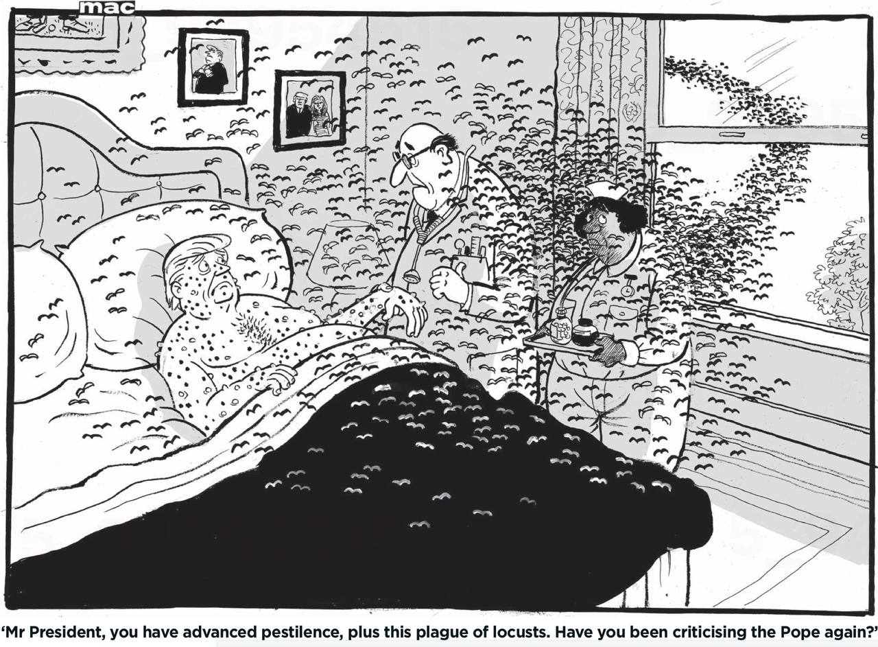 «Мистер президент, у вас прогрессирующая чума, плюс нашествие саранчи. Вы опять критикуете папу римского?»