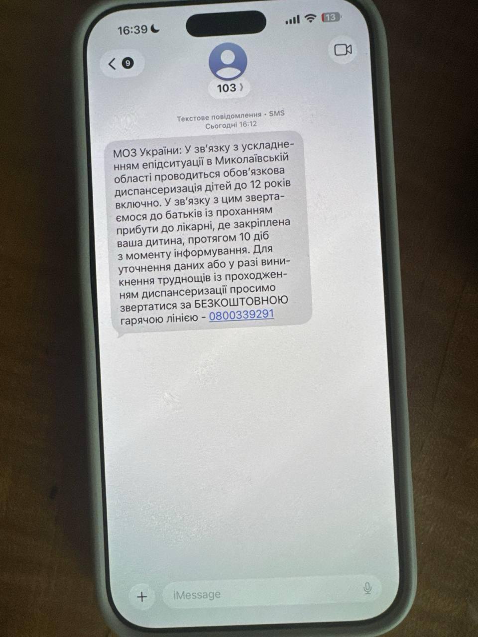 Жители Николаева получили СМС-рассылку от Министерства здравоохранения Украины, в которой родителей просят провести диспансеризацию детей до 12 лет по месту медицинского закрепления.