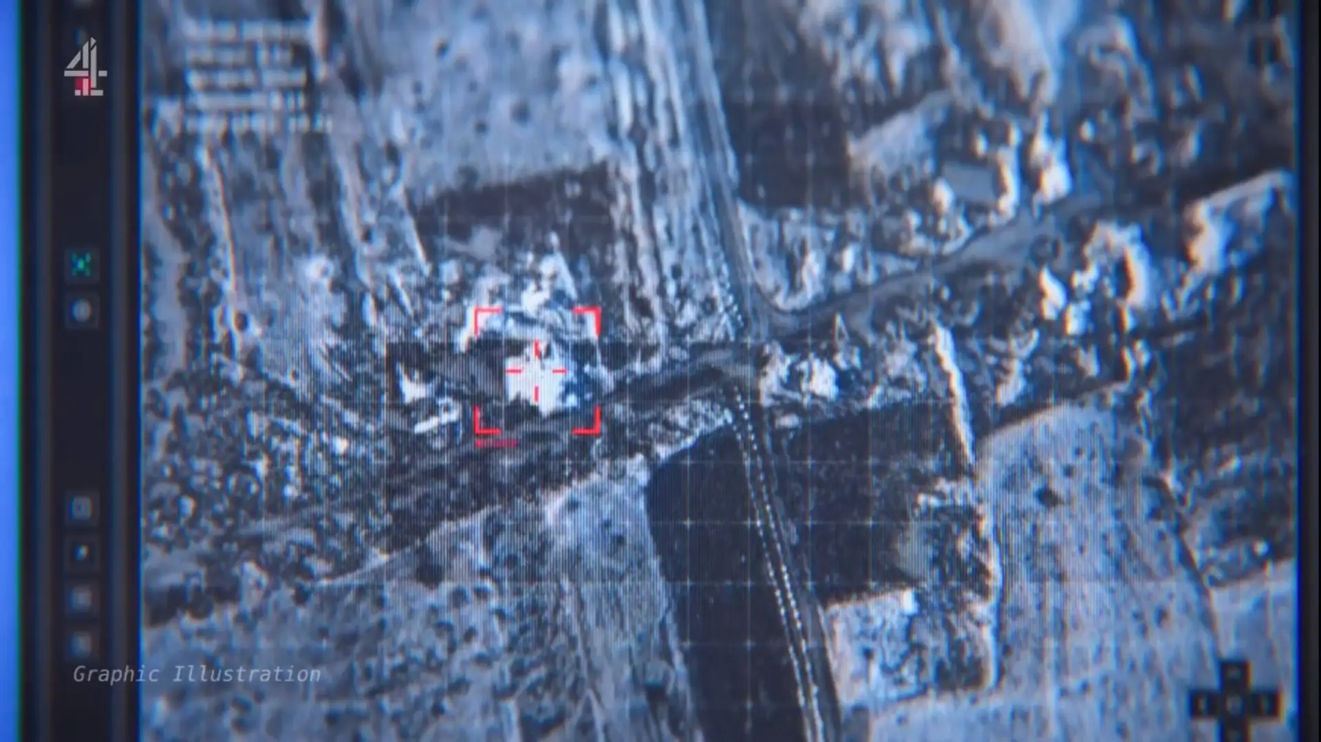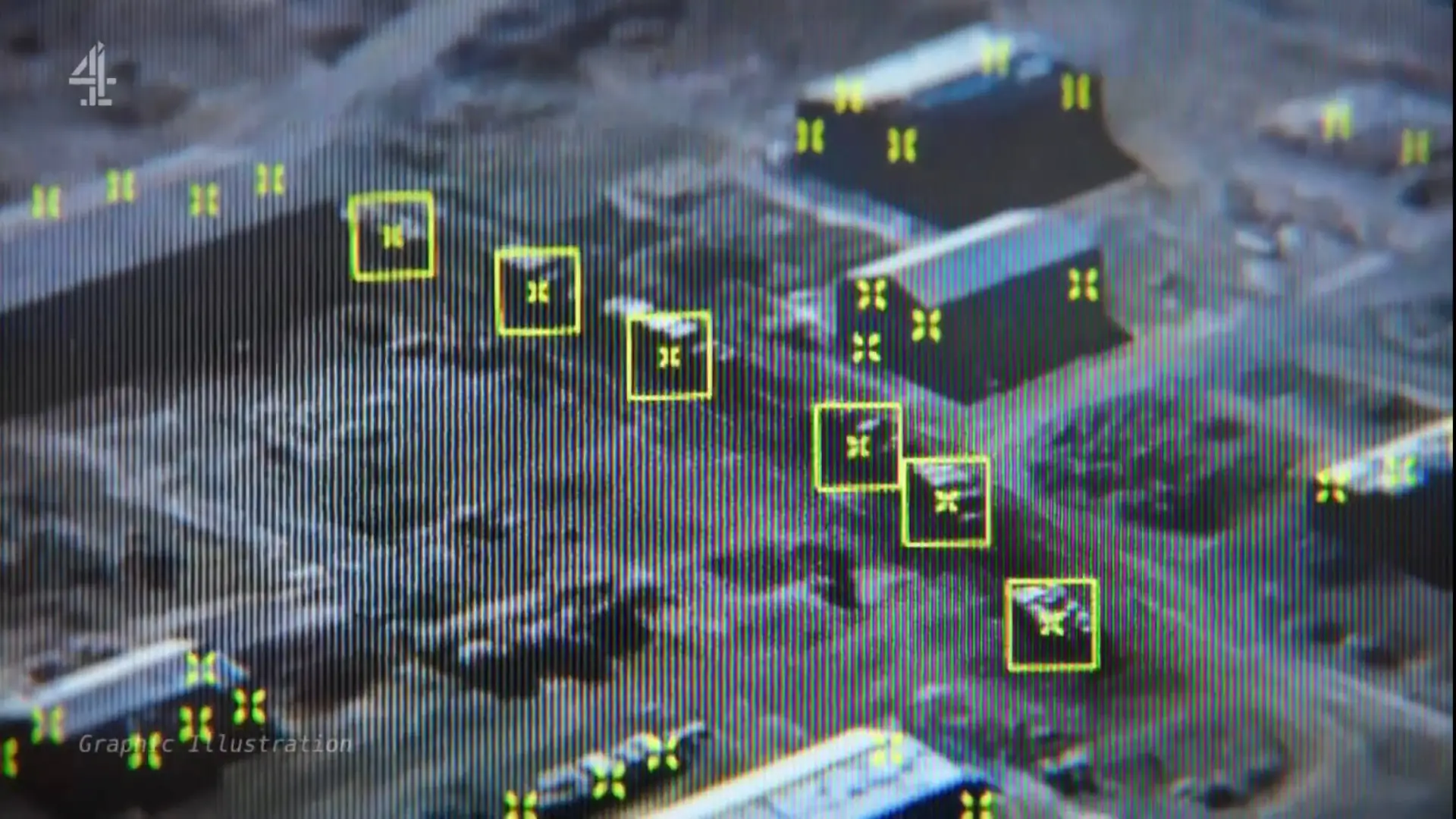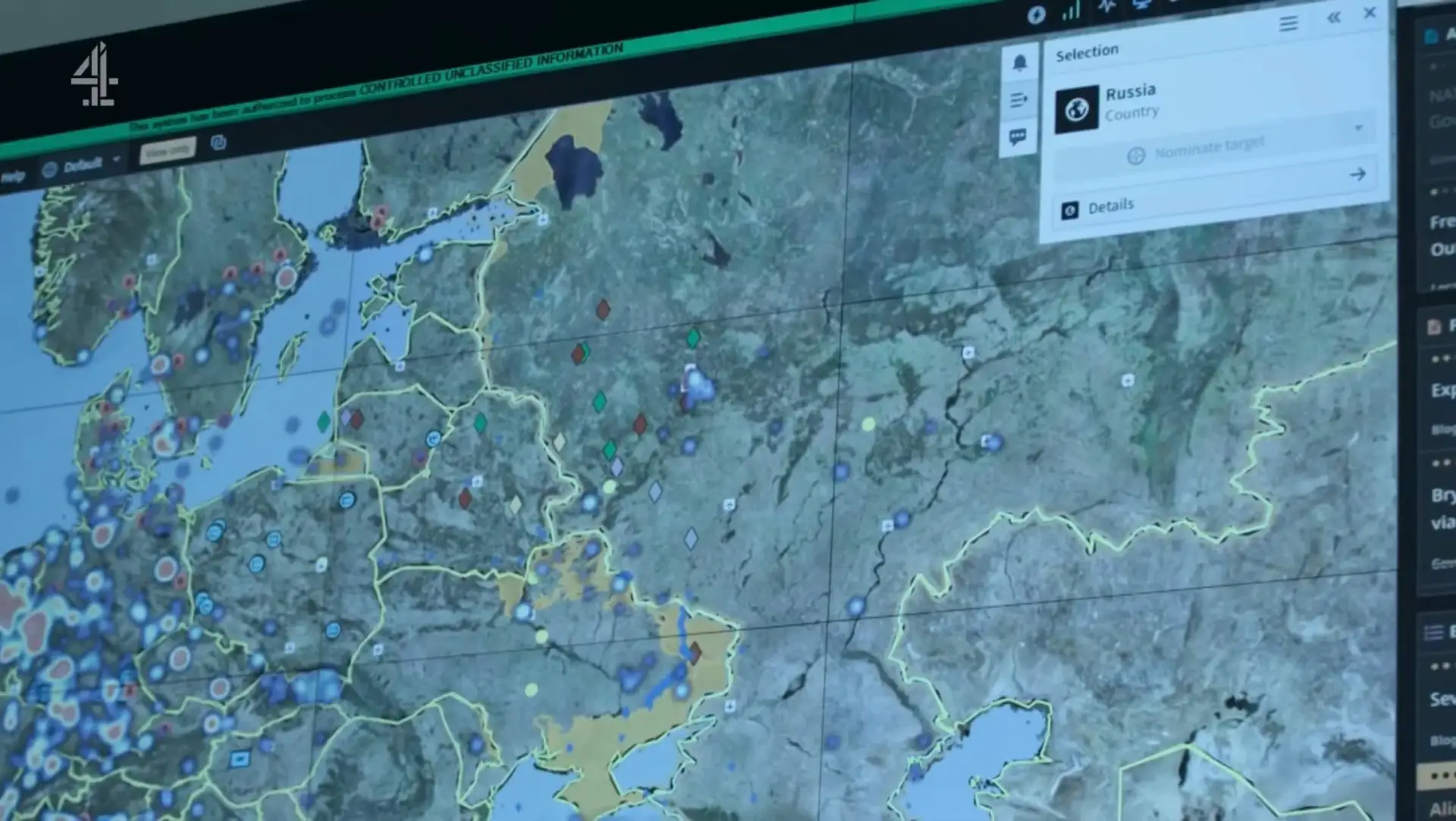 На двух последних кадрах приведён пример общей карты с точками интересами на момент максимального контроля ВС РФ на территории Украины в марте 2022 года. Кадры сделаны в штабе Командования армии США в Европе и Африке, расположенном в Германии.