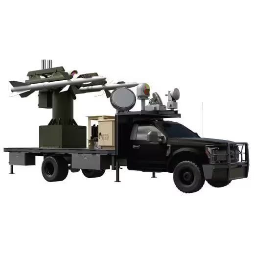 Из-за обрезки кадров опознать технику проблематично, но видно, что это грузовик с несколькими направляющими и РЛС/ОЛС. Это может быть как американский BRAWLR, украинский "Шершень" или другая подобная система.